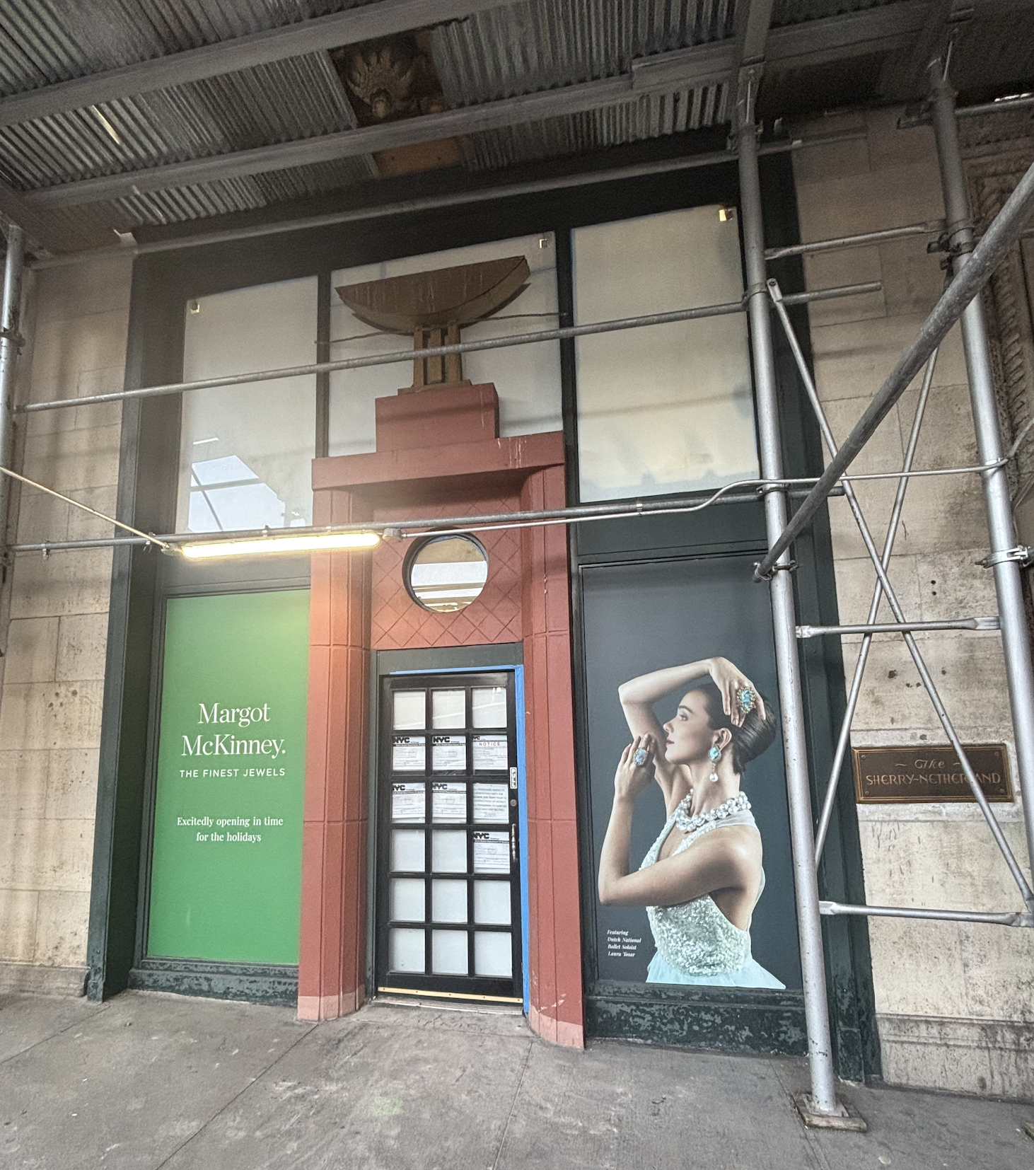 FRIENDS welcomes the preservation of this historic storefront in its original “Essex Green” color and the restoration of the distinctive stone portal crowned by a gold Grecian vessel—designed by the distinguished architect Michael Graves in 1984 as a “shrine to femininity” for the Diane von Furstenberg store. We also find the proposed stained-glass signage behind the glass oculus to be tastefully executed.