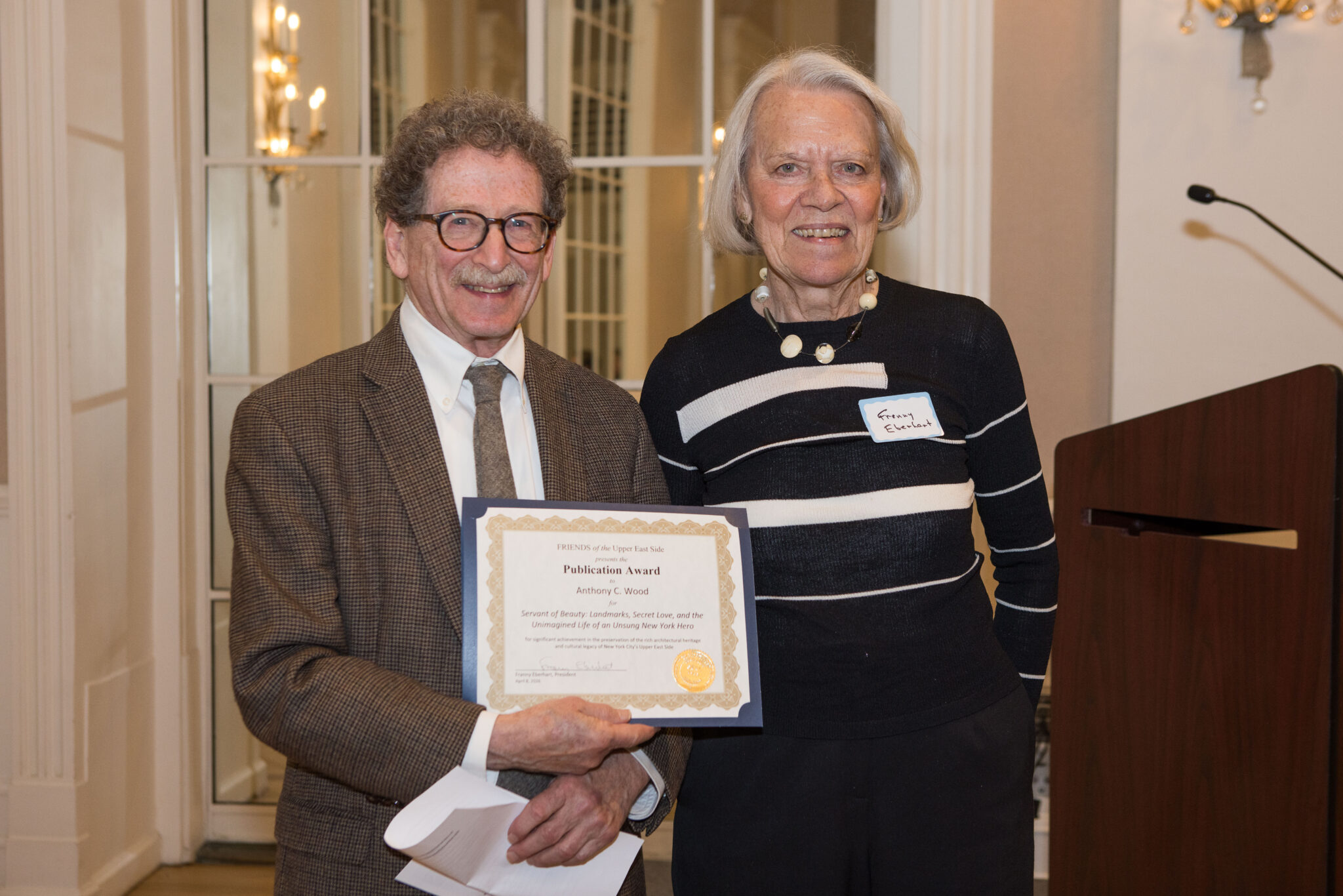 FRIENDS’ Annual Awards recognize outstanding achievement in preservation, architecture, and advocacy on the Upper East Side on a yearly basis. The awards categories are flexible and can vary each year. Among other areas of accomplishment, previous winners have demonstrated excellence in Restoration, Rehabilitation, Design, and Stewardship. Individuals and advocacy groups who have displayed extraordinary achievement in the field of preservation are eligible. Nominations are typically sought in the fall for a spring awards ceremony held at locations throughout the Upper East Side.